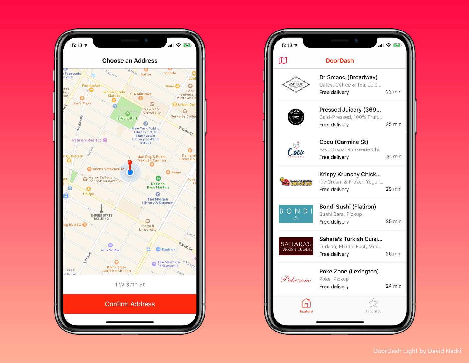 A lite clone of the DoorDash iOS app which utilizes the DoorDash API to list the restaurants available at the user's selected location on the map.
